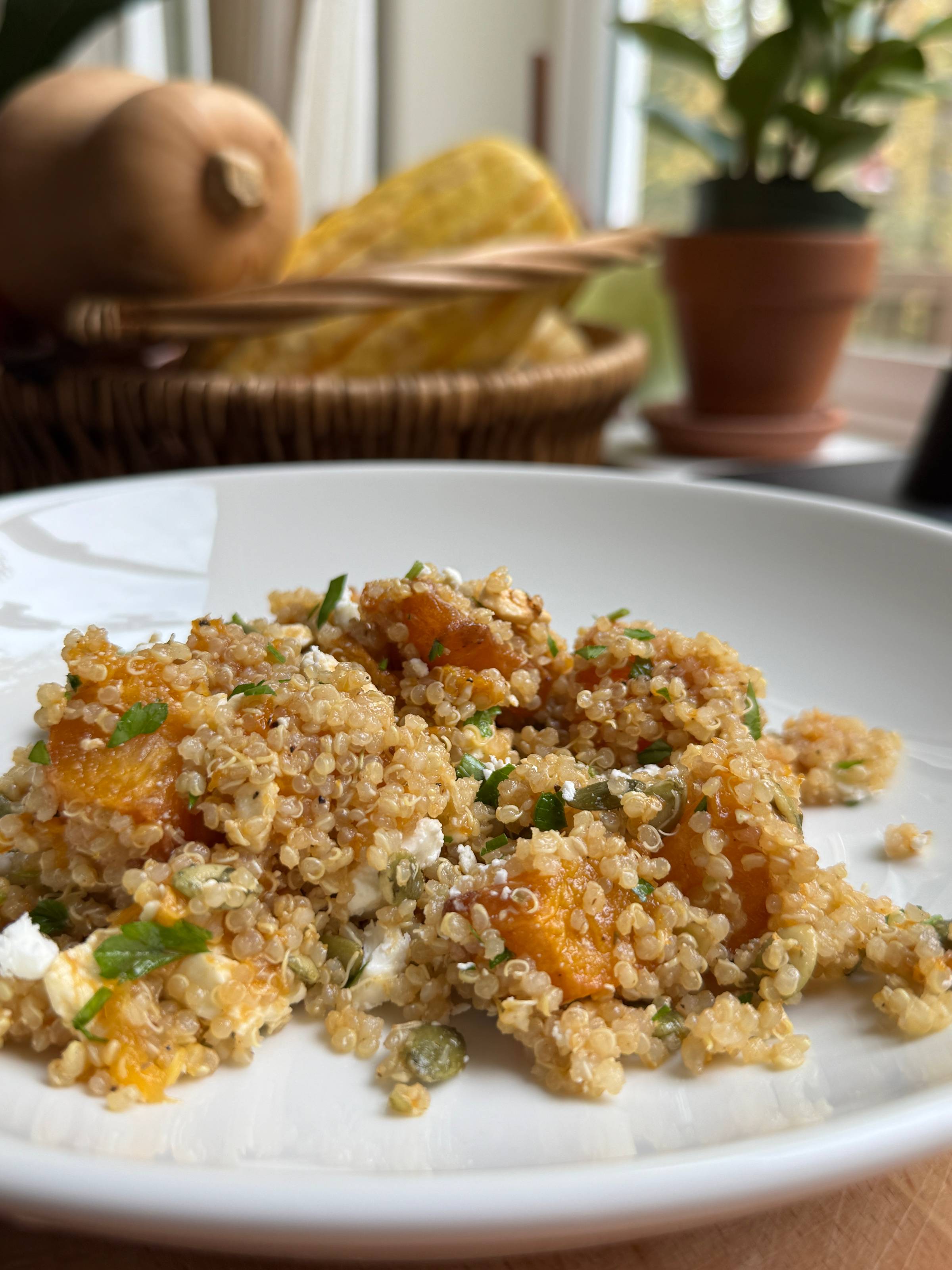 I love a side dish everyone at the table can enjoy. This Butternut Squash Salad with Quinoa and Feta is for the gluten-free, vegetarian friends (or friends of friends) who want to eat more than hummus and veggies at holiday gatherings. Nutty quinoa, caramelized squash, and a hit of salty feta - it's autumn in a bowl. (Click image for full recipe!)